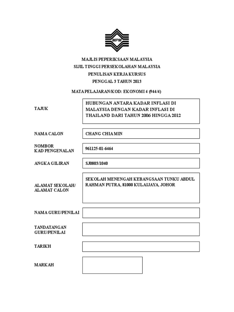 Contoh Kerja Kursus Ekonomi Stpm 2014 Assignment Pdf