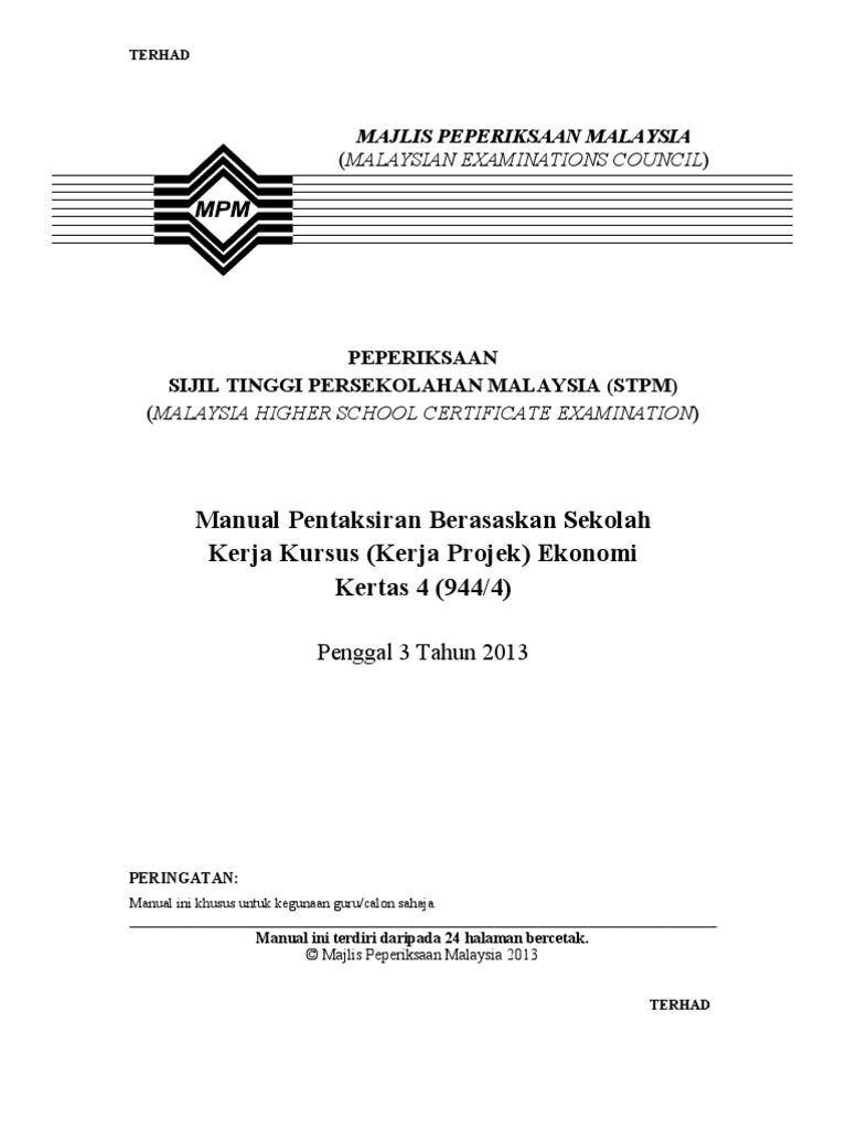 Manual Pbs Stpm Kerja Kursus Kerja Projek Ekonomi Pdf