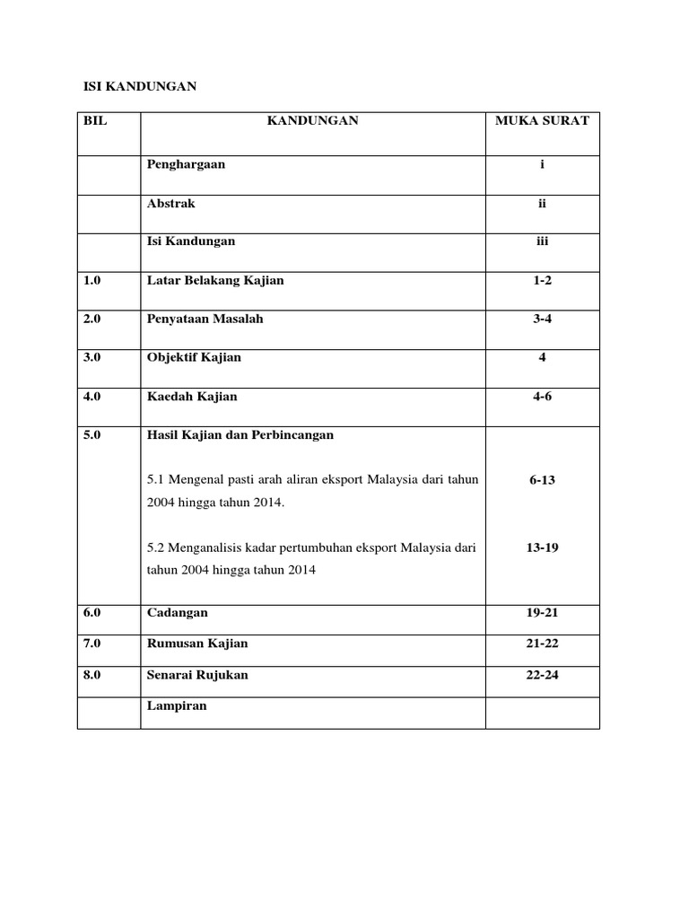 Surat 1 Latar Belakang Kajian 1-2 2 Penyataan Masalah 3 3 Objektif Kajian 4 4 Kaedah Kajian 5 5 Hasil Kajian 6-18 6 Cadangan 19-20 7 Rumusan 21 8 Senarai Rujukan 22 9 Lampiran 23-26 f10 Latar Belakang Kajian Perusahaan kecil dan sederhana PKS telah memainkan peranan penting dalam menjana ekomomi negara melalui peningkatan pengeluaran untuk. Akhir kata seikhlas tulus terima kasih kepada semua pihak yang telah membantu saya secara langsung dan tidak langsung dalam menjayakan kerja kursus ini. Semoga dapat membantu adik2 dalam menyiapkan KK Ekonomi.